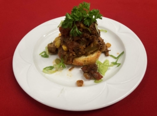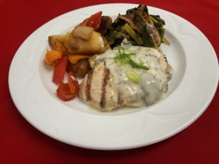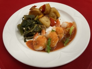 The Menu was: Kentucky Burgoo Stew with Cornbread~Burbon Chicken or Creole Shrimp~ Served with Potato O’Brien or Rice~Collard greens and Okra Derby Pie or Diced Fruit